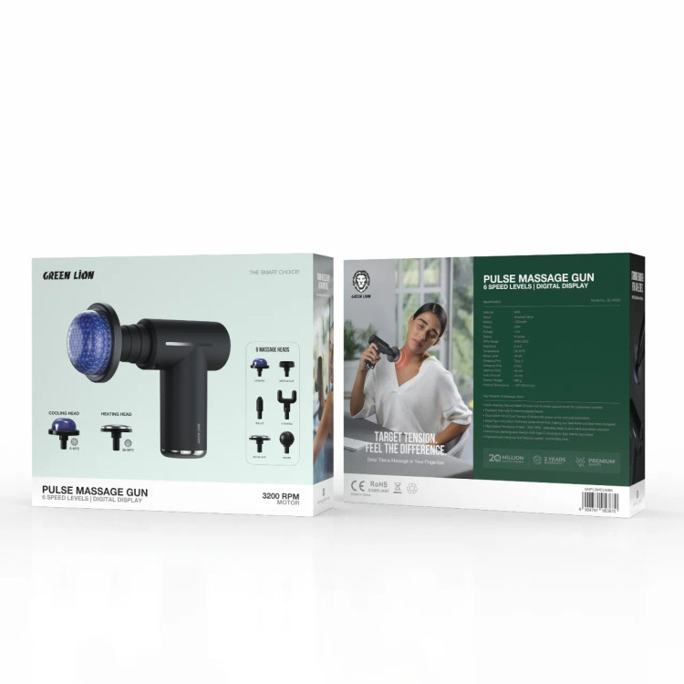 ماساژور تفنگی Green Lion Pulse Massage Gun یک ابزار مدرن و قدرتمند برای بهبود ریکاوری عضلات، کاهش خستگی، تسکین درد و افزایش گردش خون است. این دستگاه با طراحی ارگونومیک و عملکرد حرفهای، مناسب استفاده روزانه، بعد از تمرینات ورزشی، یا برای تسکین دردهای عضلانی است.