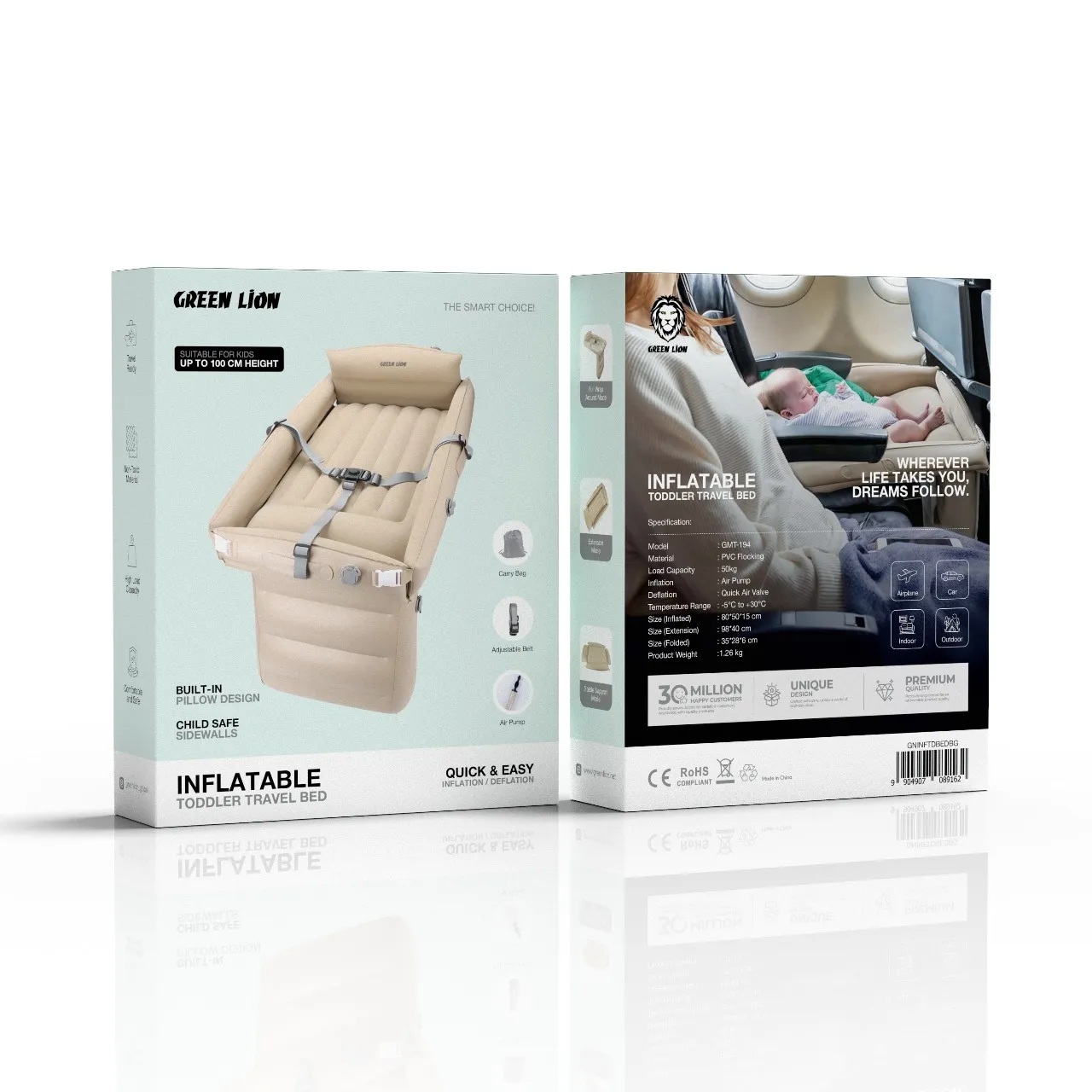 تشک بادی نوزاد همراه با پمپ شارژی گرین لاین مدل 089162 Green Lion Inflatable Toddler Travel Bed