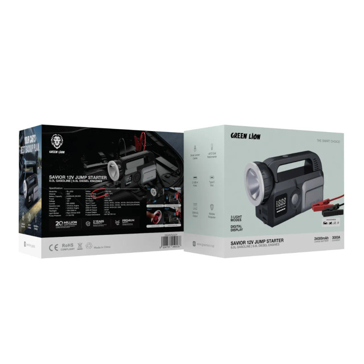 با Green Lion Savior 12V Jump Starter، همیشه آماده باشید—چه در جاده، چه در طبیعت یا حتی در پارکینگ خانه. این دستگاه همهکاره، امنیت، آسایش و استقلال شما را در هر شرایطی تضمین میکند.