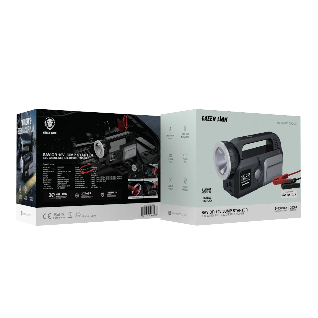 پاوربانک 24000، کمپرسور باد و جامپ استارتر گرین لاین مدل Green Lion Savior 12V؛ همهکاره، قدرتمند و قابلاعتماد برای خودرو شما