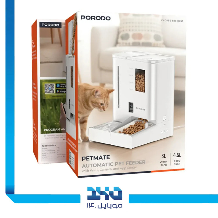 دستگاه تغذیه و آبرسانی هوشمند Porodo PetMate یک راهکار پیشرفته برای مدیریت تغذیه حیوانات خانگی در زمان حضور یا عدم حضور صاحب حیوان است. این دستگاه با مخزن غذای ۵ لیتری و مخزن آب ۴ لیتری، مناسب نگهداری غذای خشک با اندازه ۳ تا ۱۰ میلیمتر بوده و از طریق اپلیکیشن Smart Life در سیستمعاملهای iOS و Android قابل کنترل است. پشتیبانی از وایفای 2.4G و 5G، دوربین HD با امکان مشاهده زنده و ضبط صدا، نظارت کامل بر وضعیت حیوان خانگی را فراهم میکند. طراحی بدنه از جنس ABS، قابلیت تمیزکاری آسان و امکان تأمین انرژی از طریق آداپتور ۵ ولت DC یا ۳ باتری آلکالاین D، این محصول را به گزینهای ایدهآل برای استفاده خانگی و سفر تبدیل کرده است.