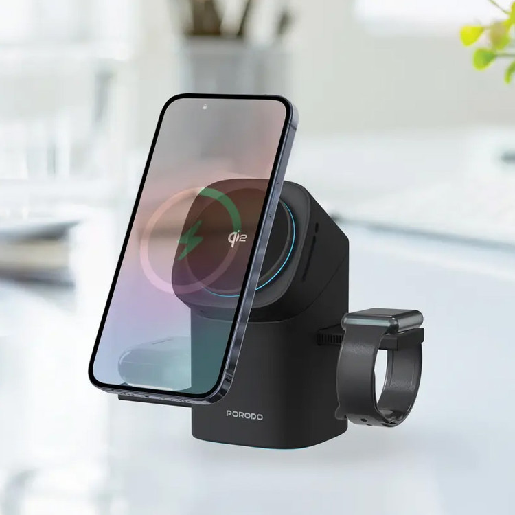 شارژر مگ سیف 3 در 1 با قابلیت چرخش خودکار پرودو مدل PD-FWCH043