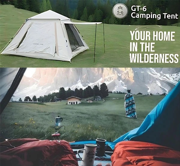 چادر GT6 با ابعاد 240×240×155 سانتیمتر فضای کافی برای 6 نفر را فراهم میکند و به راحتی نیازهای شما در سفرها و کمپینگهای گروهی را پوشش میدهد.