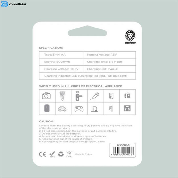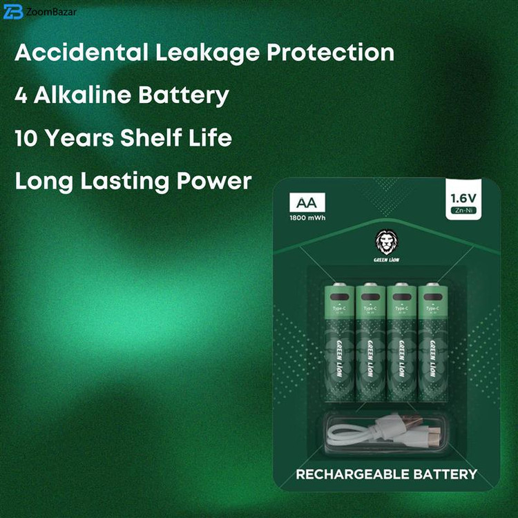 باتری قلمی قابل شارژ گرین لاین GNRGBAA ظرفیت 1800 میلی آمپر بسته 4 عددی