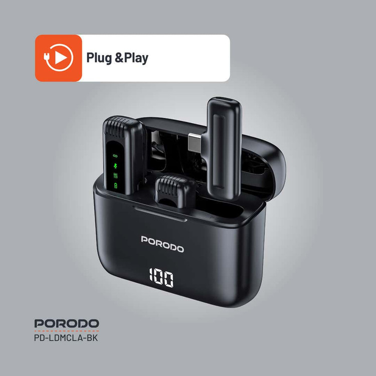 میکروفون بی سیم پرودو Porodo Lavalier Microphone PD-LDMCLA دارای ۲ فرستنده