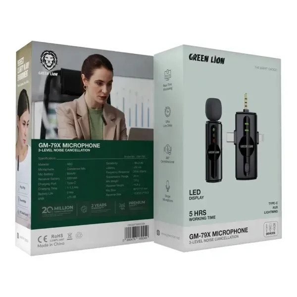 میکروفون بی سیم گرین لاین GM-79X با کیفیت بالا، قابلیت حذف نویز، تأخیر بسیار پایین و باتری قدرتمند، یک همراه حرفهای برای استریم، ضبط ویدئو و تماسهای تصویری است.