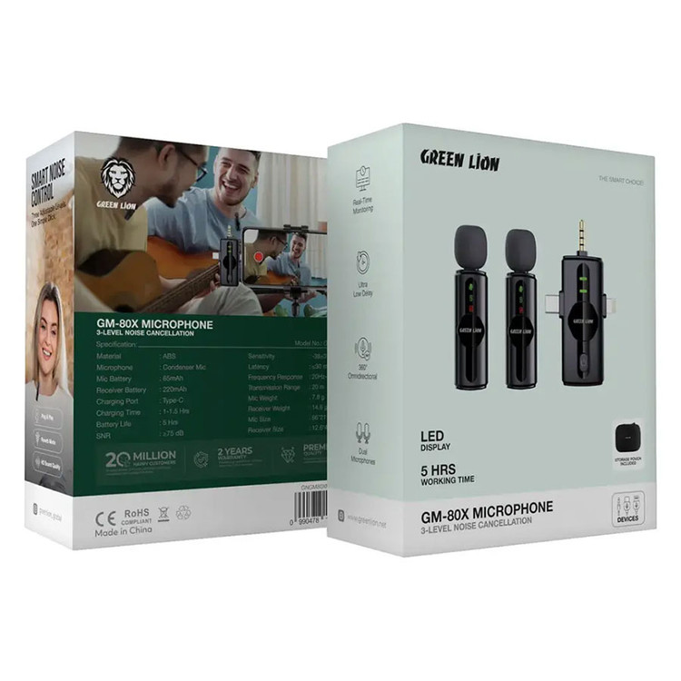 میکروفون سه کاره Green Lion GM-80X کیفیت صدای عالی و عملکرد فوقالعادهای در ابعاد جمع و جور دارد. این میکروفون با داشتن یک میکروفون کندانسور، قابلیت ضبط صدای همهجهته ۳۶۰ درجه را دارد و صداهای واضحی را در هر جهتی ارائه میدهد.