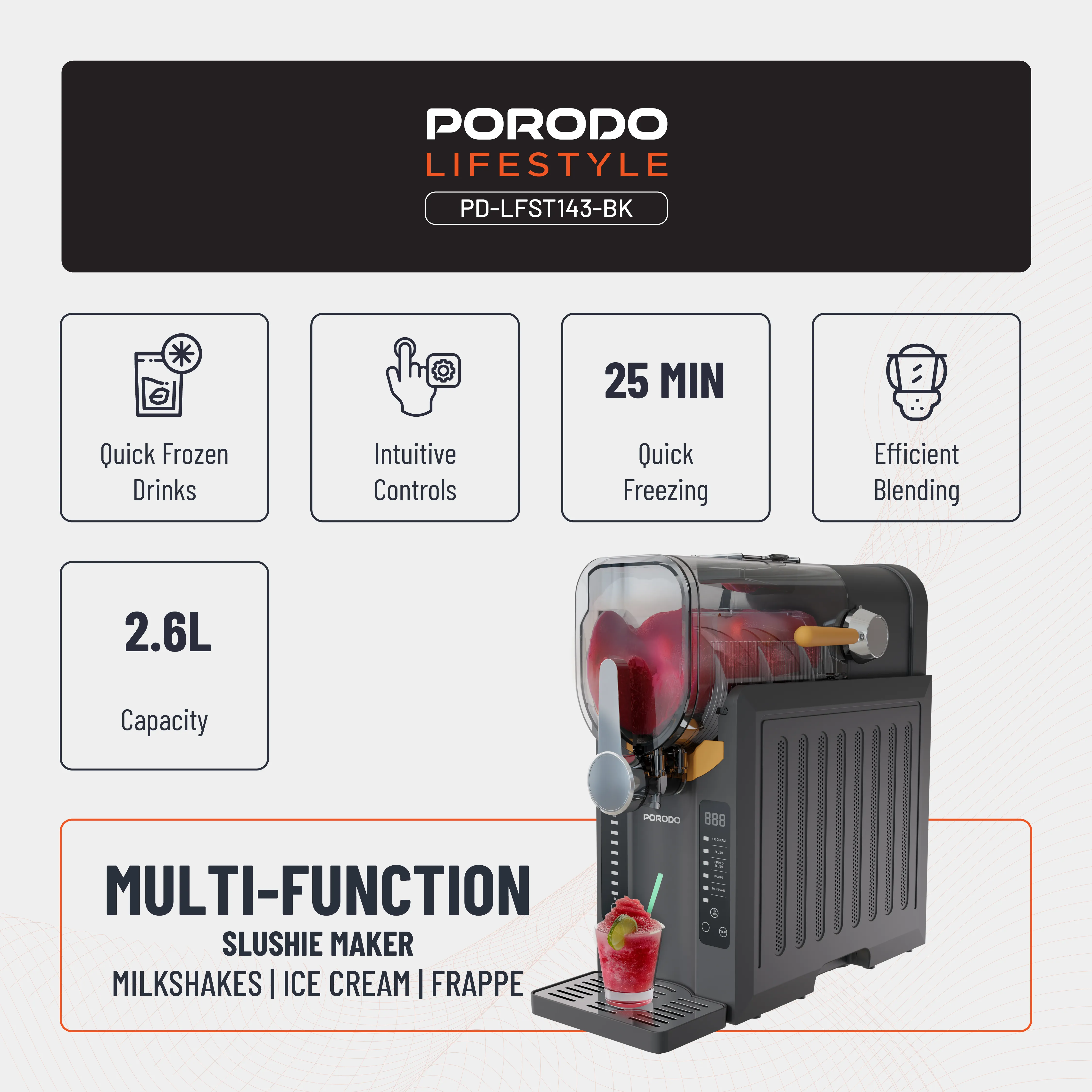 - قدرت بالا: موتور ۲۰۰ وات برای تهیه سریع اسلاشی، میلکشیک، فرپه و بستنی نرم