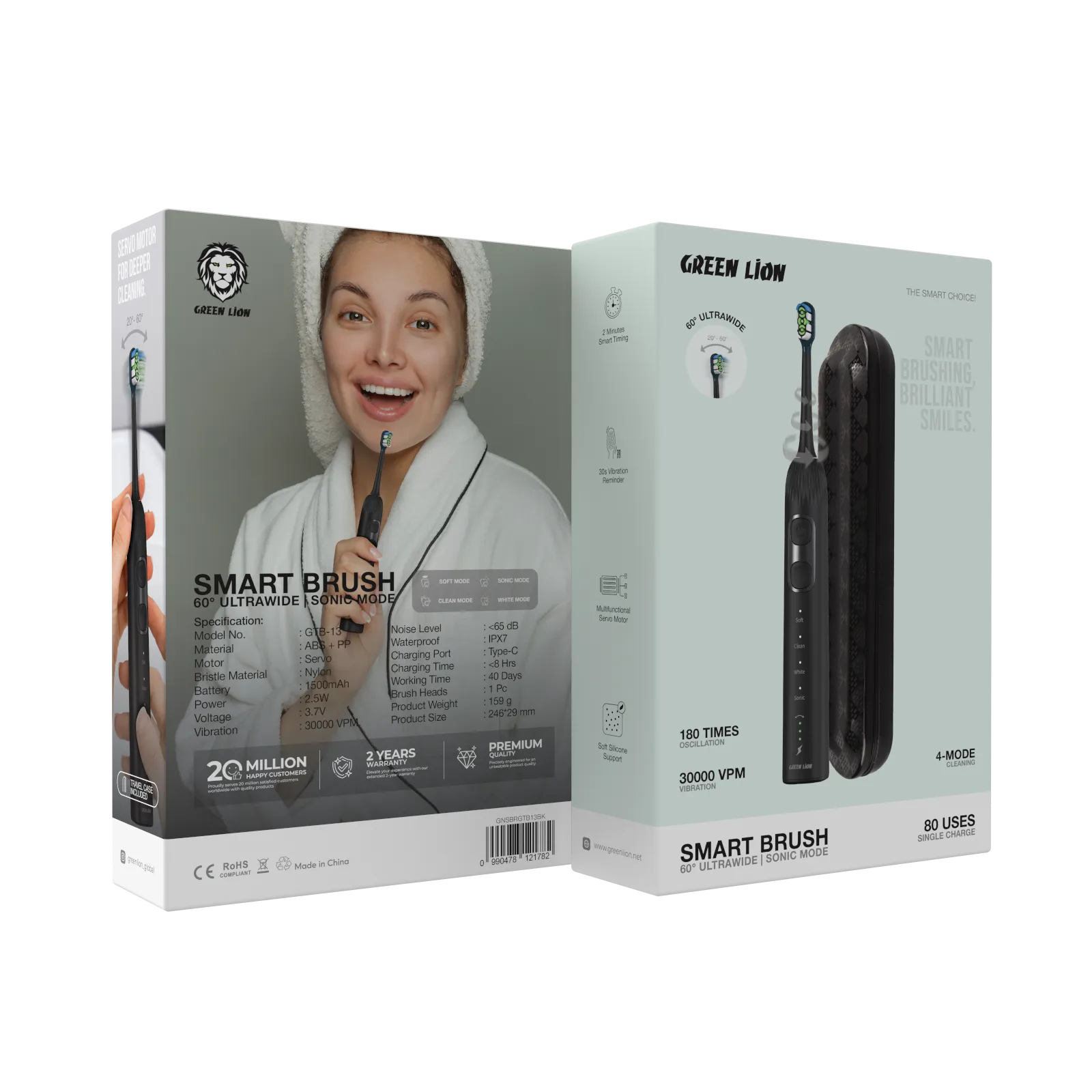اولین چیزی که در مواجهه با مسواک گرین لاین GNSBRGTB13BK جلب توجه میکند، طراحی مدرن و ارگونومیک آن است. بدنه این مسواک با دقت فراوان و با در نظر گرفتن راحتی کاربر طراحی شده است. وزن سبک و تعادل مناسب آن در دست، باعث میشود مسواک زدن حتی برای مدت طولانی نیز خستهکننده نباشد. متریال بهکار رفته در ساختار بدنه، اغلب از پلاستیک با کیفیت بالا و ضد لغزش است که اطمینان از نگه داشتن محکم مسواک در محیط مرطوب حمام را فراهم میآورد. ابعاد مناسب، به همراه دکمههای کنترلی که به راحتی در دسترس هستند، تجربه کاربری بسیار روانی را ارائه میدهند. رنگ مشکی آن نیز حسی از وقار و مدرنیته به محصول میبخشد که آن را مناسب هر سلیقهای میکند. این طراحی نه تنها زیباست، بلکه کاملاً کاربردی و متمرکز بر بهبود تجربه روزانه شما از مسواک زدن است.