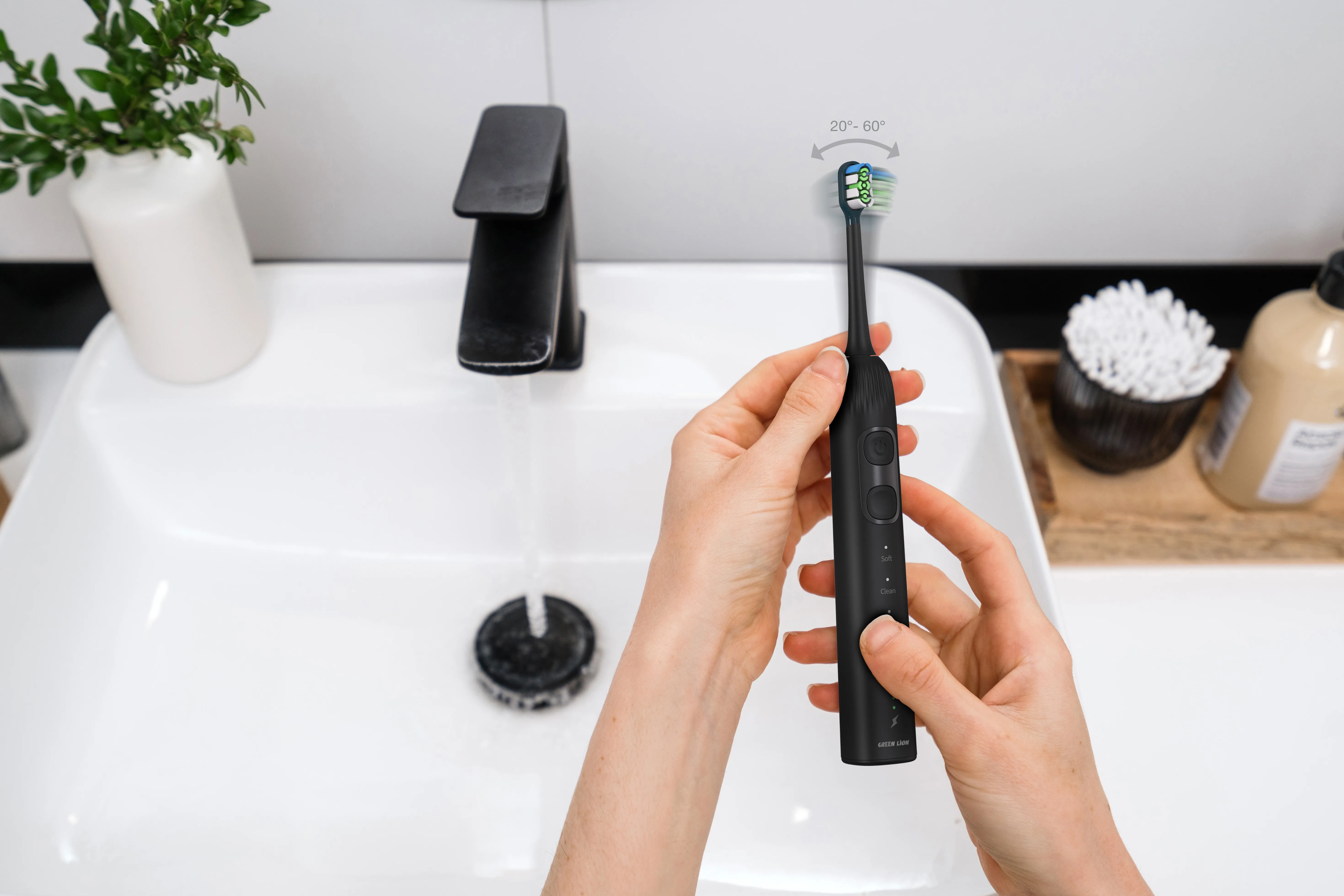 شبیهسازی تکنیکهای مسواک زدن توصیه شده: حرکت 60 درجهای به نوعی شبیهساز حرکات توصیه شده توسط دندانپزشکان (مانند تکنیک باس اصلاح شده) است که در آن برس با زاویه 45 درجه نسبت به خط لثه قرار گرفته و حرکات لرزشی کوچکی انجام میدهد. این مسواک با تکنولوژی خود، این حرکات دقیق را به صورت خودکار و با بهترین کارایی انجام میدهد.