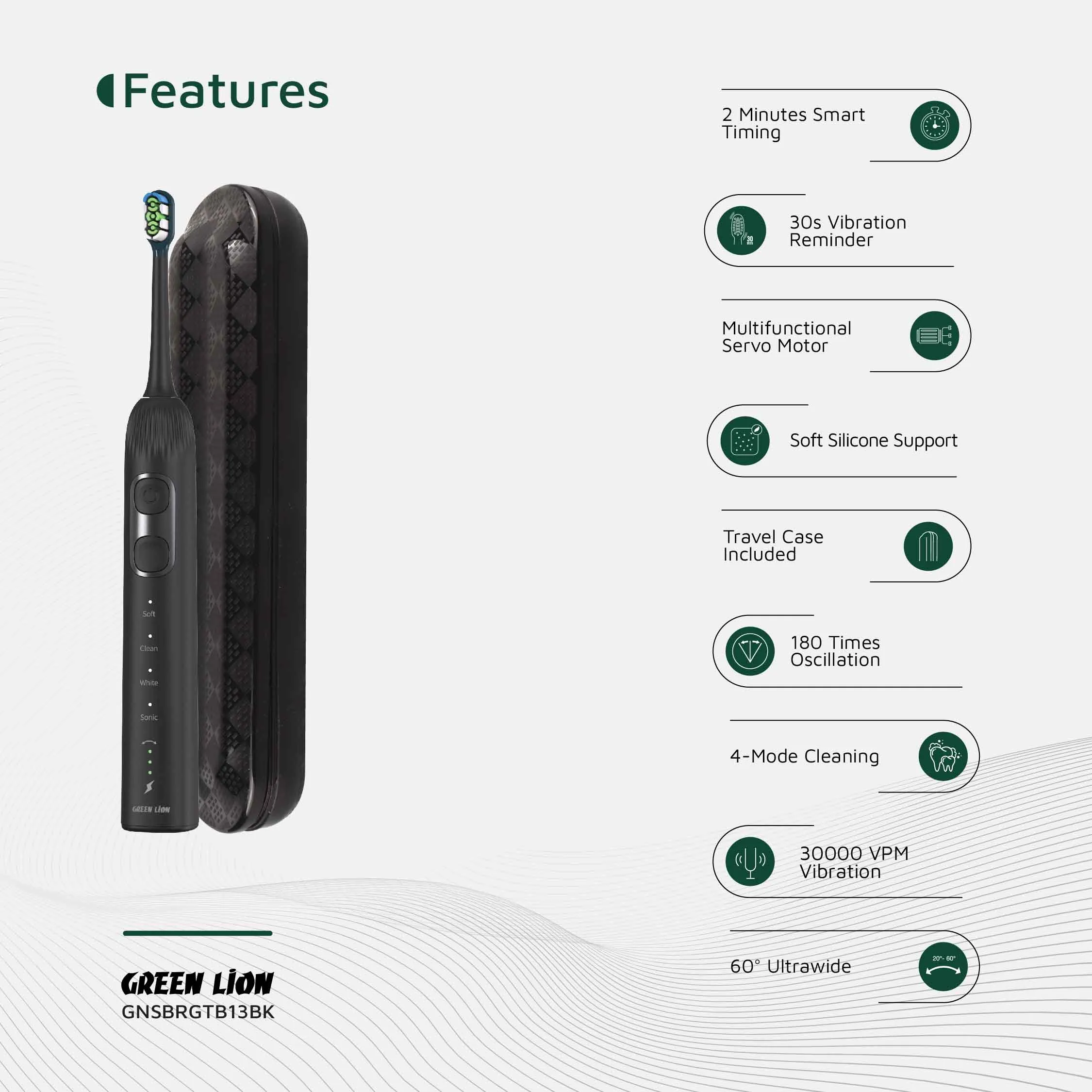 مسواک شارژی گرین لاین GNSBRGTB13BK با در نظر گرفتن راحتی و هوشمندی در تجربه کاربری طراحی شده است. این ویژگیها، استفاده از مسواک را نه تنها مؤثرتر، بلکه لذتبخشتر میکنند: