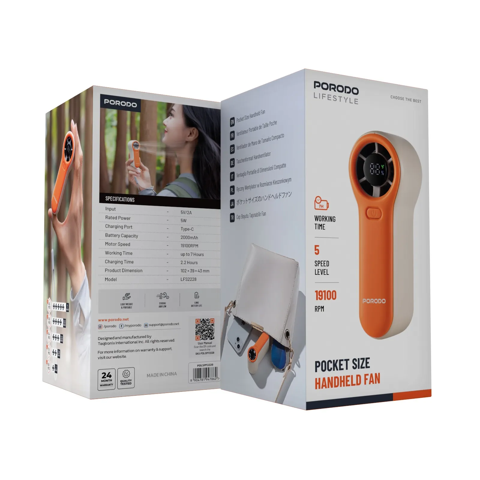 در ابتدای متن، مینی پنکه دستی باد سرد پرودو مدل Pocket Size Handheld Fan (PDLSPF2228) بهعنوان راهحلی سبک، جمعوجور و قدرتمند در گرمای روزمره یا سفر معرفی میشود. این پنکه با باتری ۲۰۰۰ mAh قابلیت کار تا ۷ ساعت را در سرعت پایین دارد. موتور پرسرعت با ۱۹۱۰۰RPM در کنار ۵ سطح سرعت قابل تنظیم، باد سرد و دلپذیری ایجاد میکند. طراحی شارژ از طریق درگاه USB-C با زمان شارژ نزدیک به ۲.۲ ساعت و توان مصرفی ۵ وات، استفاده آسان و مؤثری را تضمین میکند.
