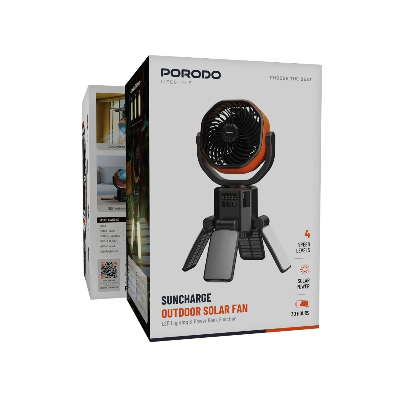 ویژگیهای برجسته Porodo Lifestyle Suncharge Outdoor Solar Fan: