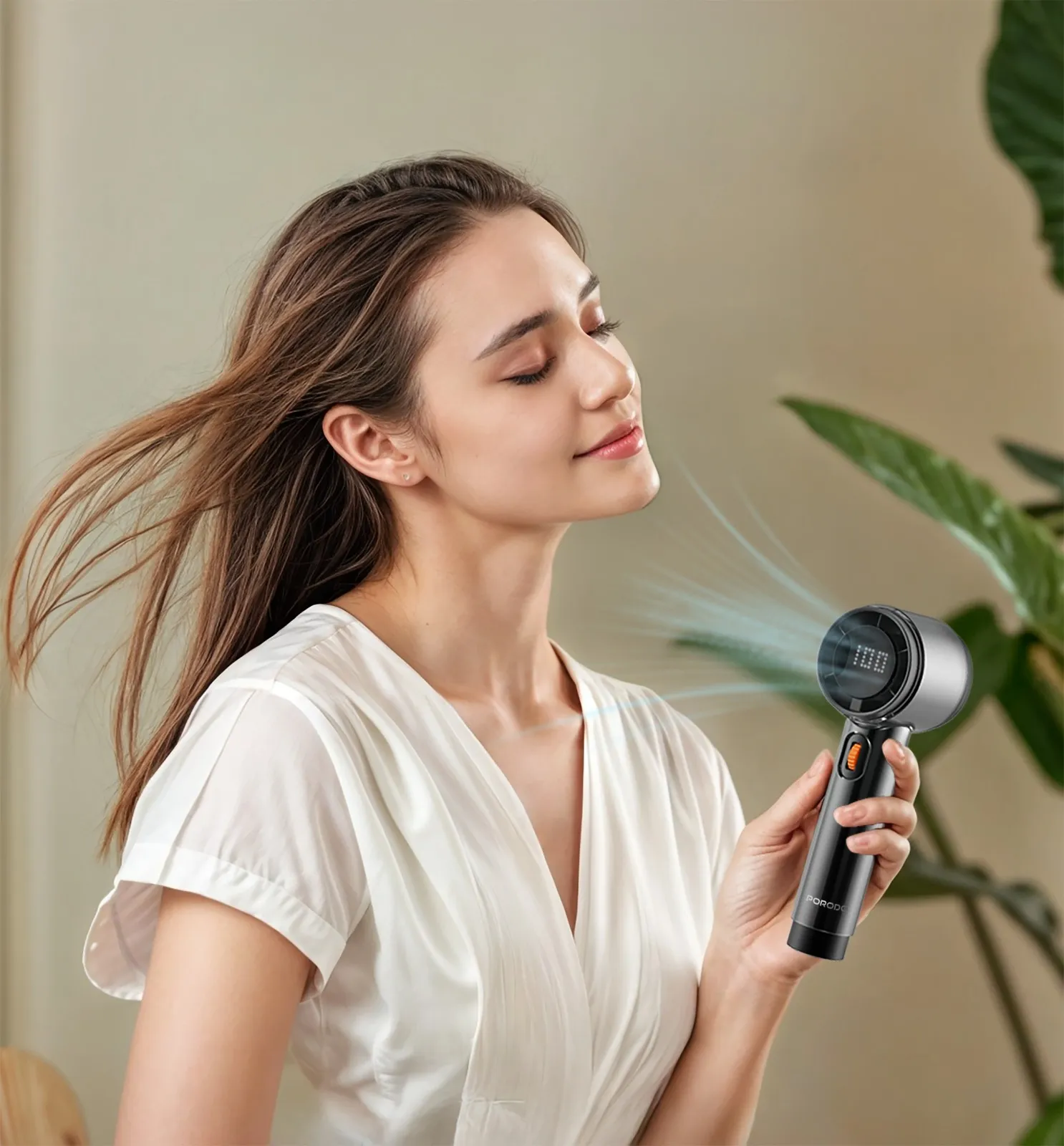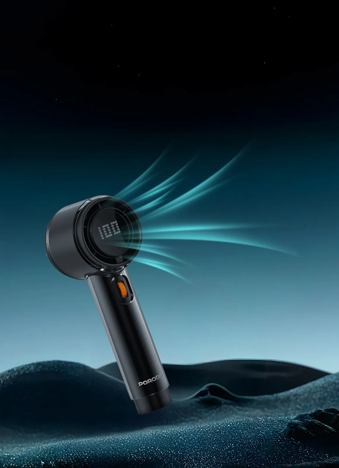 - فناوری توربو قدرتمند: مجهز به موتور توربو پیشرفته که جریان هوای بسیار قوی و متمرکزی را تولید میکند، به مراتب قدرتمندتر از فنهای دستی معمولی، و به سرعت شما را خنک میکند.