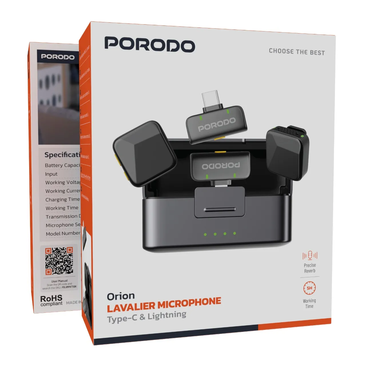 میکروفون Porodo Orion Lavalier Type-C و Lightning صدایی شفاف و کریستالی را برای رفع تمام نیازهای ضبط ارائه میدهد. این میکروفون کیفیت صدای حرفهای را از طریق ریورب دقیق و حساسیت عالی تضمین میکند و آن را برای هر تولیدکننده محتوا، پادکستر یا ولاگر ایدهآل میسازد.