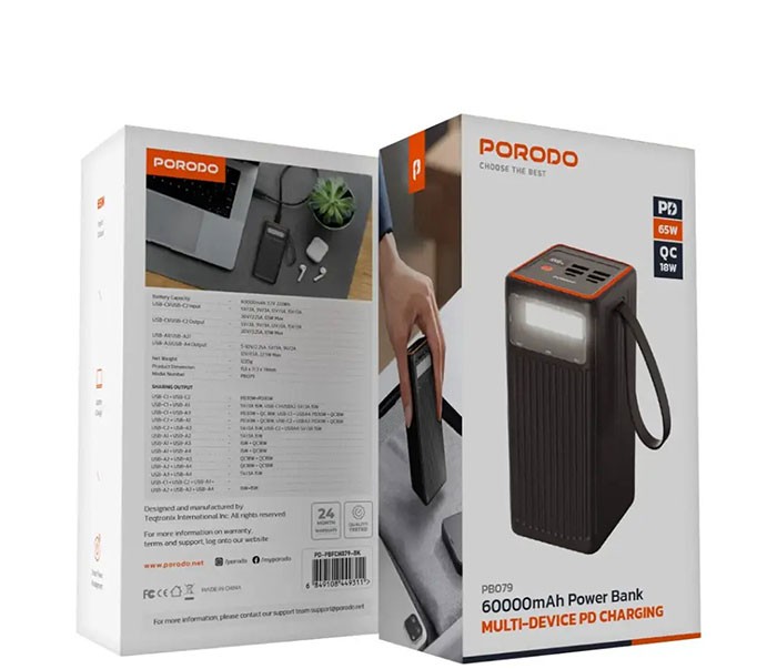 پاوربانک پرودو مدل PBFCH079 ظرفیت ۶۰۰۰۰ میلیآمپر ۶۵ وات