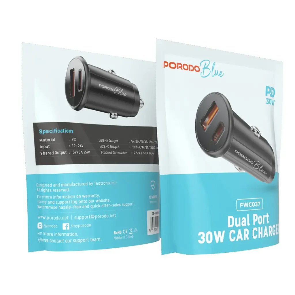 شارژر خودرو پورودو بلو دو درگاه ۳۰ وات