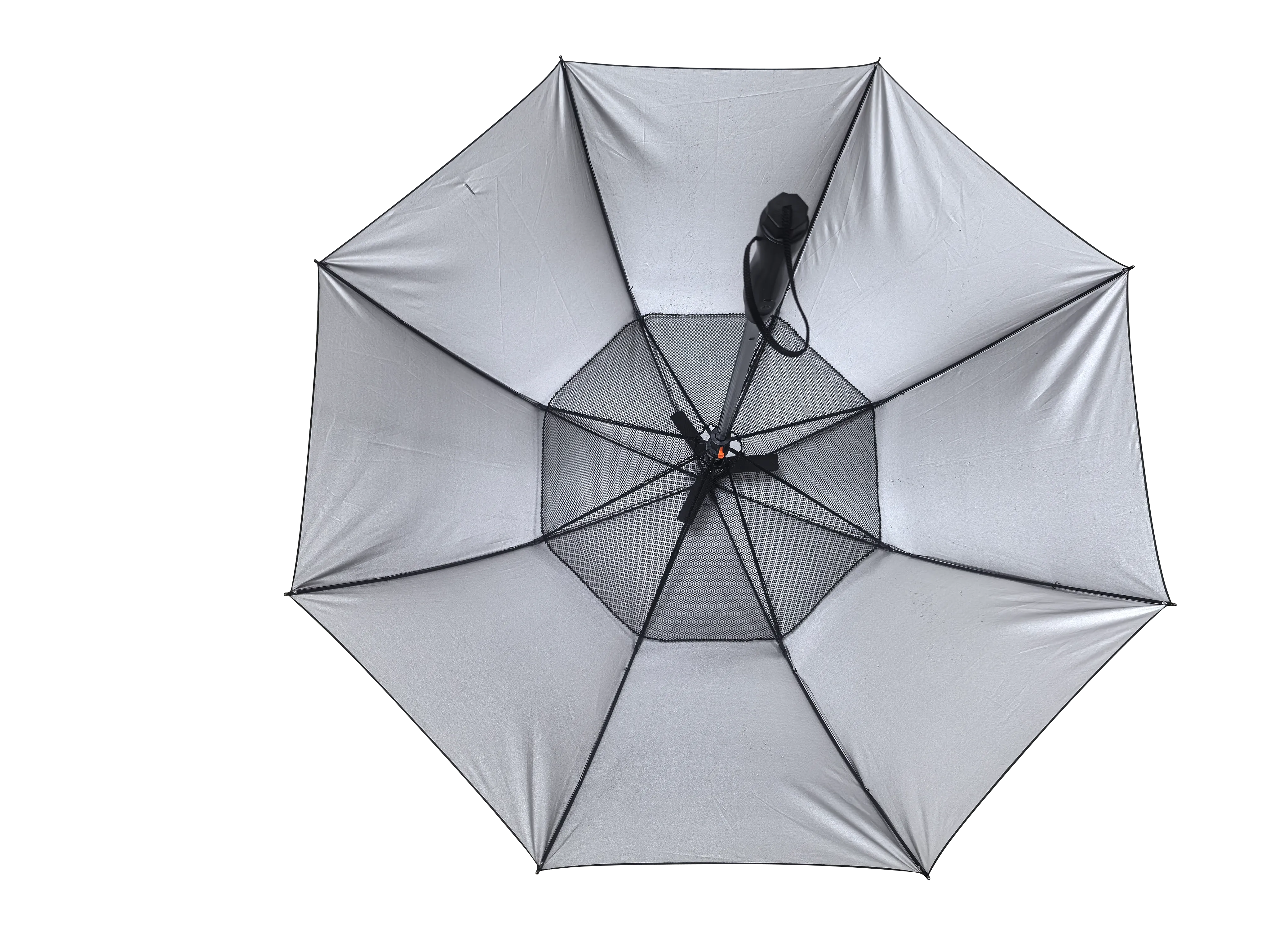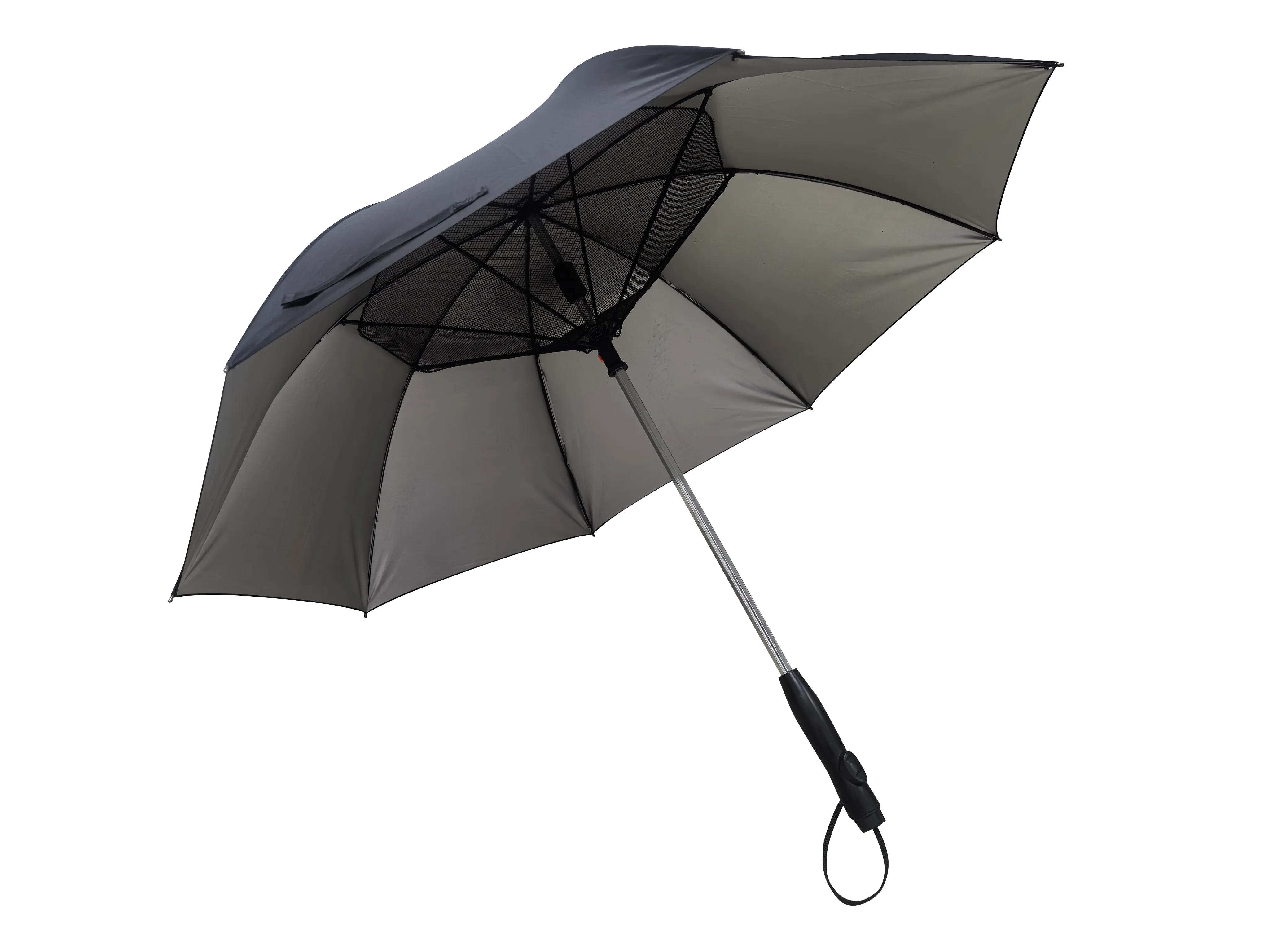 یکی از ویژگیهای منحصربهفرد این چتر، فن داخلی آن است که به صورت یکپارچه در ساختار چتر تعبیه شده است. این فن با تولید جریان هوای خنک، گرمای شدید را کاهش داده و تجربهای دلپذیر از استفاده از چتر ارائه میدهد. این ویژگی برای افرادی که مجبورند مدت طولانی در فضای باز بمانند یا در مناطق گرم و مرطوب زندگی میکنند، ایدهآل است.