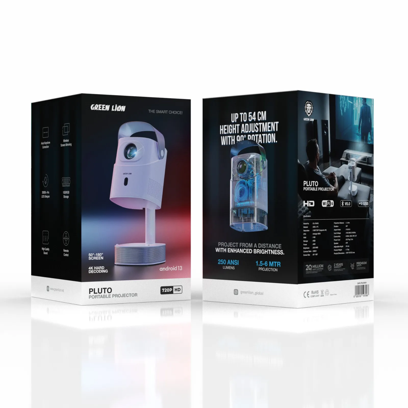 یکی از مهمترین ویژگیهای این پروژکتور، وزن کم و طراحی ارگونومیک آن است. بهراحتی میتوانید پلوتو گرین را داخل کیف یا چمدان قرار دهید و به هر جایی ببرید؛ از سفرهای تفریحی تا کمپینگ و حتی جلسات حرفهای.