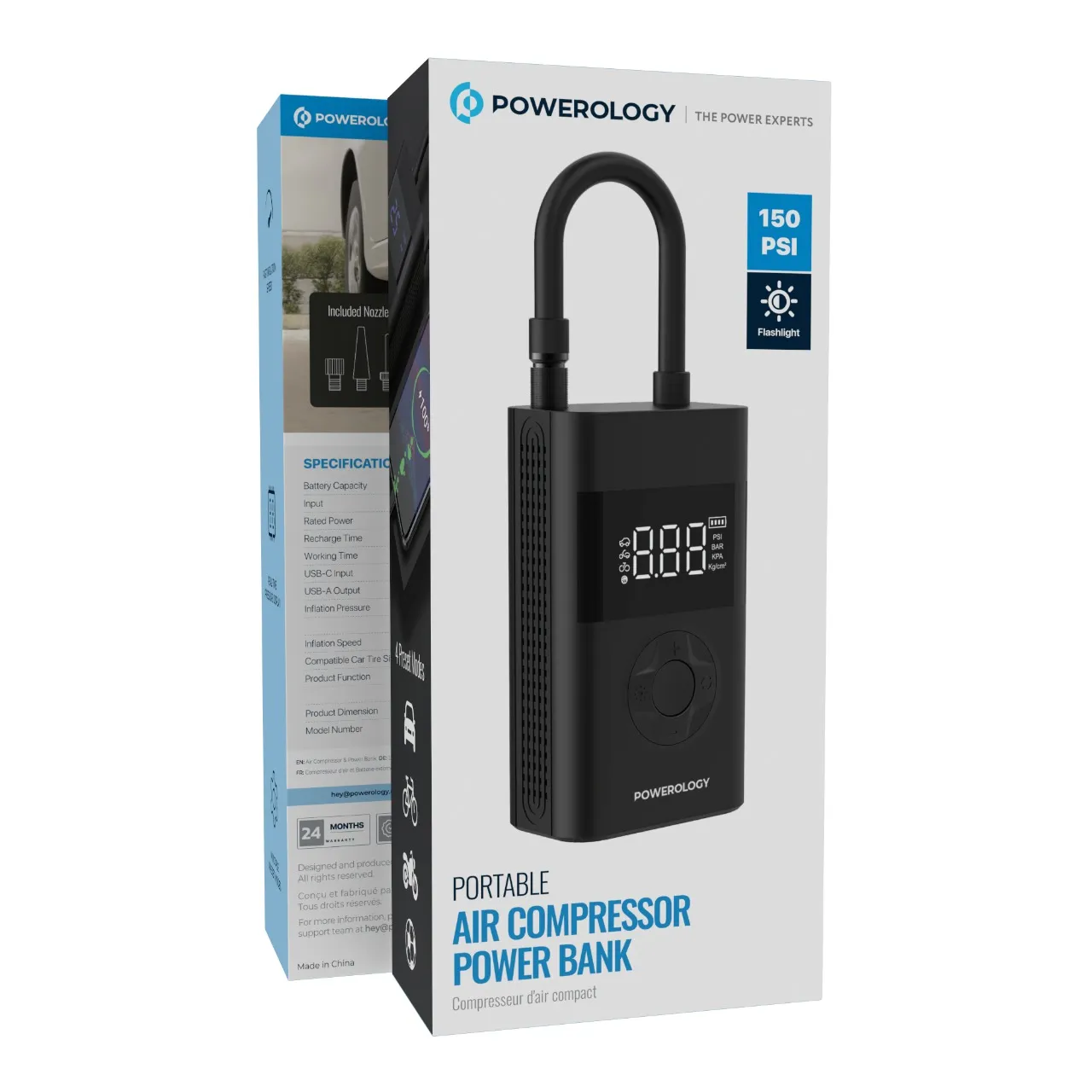 پمپ باد و پاوربانک پاورولوژی مدل PPBCHA55 یک دستگاه دوکاره است که علاوه بر باد کردن تایر خودرو ، موتورسیکلت ، دوچرخه و سایر وسایل بادی ، به عنوان یک پاوربانک قدرتمند نیز عمل میکند . این محصول با طراحی مقاوم ، کاربردی و سبک ، یک گزینه عالی برای مسافرت ، شرایط اضطراری و استفاده روزمره محسوب میشود. این دستگاه می تواند فشار لاستیک را تشخیص داده و در صورت نیاز تا 20 دقیقه به طور مداوم آن را باد کند . چراغ قوه به کار رفته در این دستگاه به شما امکان استفاده از کمپرسور را در تاریکی شب می دهد و این اطمینان را ایجاد می کند که نیازی به انتظار برای رسیدن کمک نخواهید داشت . کمپرسور هوا Poweology تنها 3 ساعت طول می کشد تا شارژ شود و همیشه آماده استفاده است . در نهایت ، این دستگاه به عنوان یک پاوربانک اضطراری نیز عمل می کند و به شما اطمینان می دهد که می توانید در هر زمانی گوشی خود را شارژ کرده و از آن استفاده کنید .
