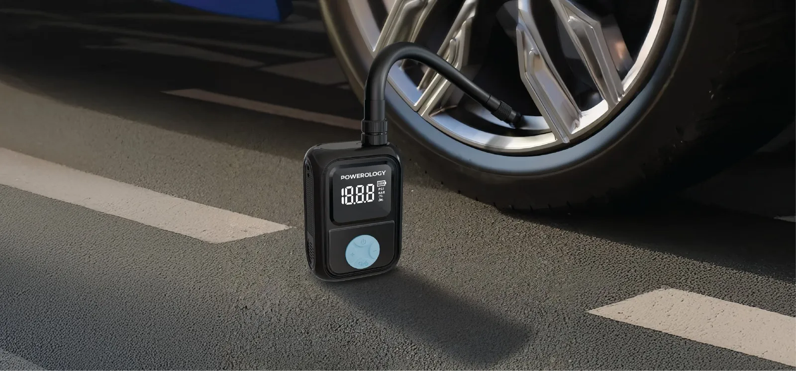 پمپ باد برقی قابل حمل Powerology ابزاری کاربردی است که در کمترین زمان تایرها را باد میکند. این دستگاه دارای یک موتور ۴۸ واتی و ظرفیت باتری ۶۰۰ میلیآمپر ساعت است. میتواند تایرها را از ۳ تا ۱۵۰ PSI باد کند. سیلندر ۱۳ میلیمتری آن جریان هوای قوی و ثابتی را به تایرها منتقل میکند.