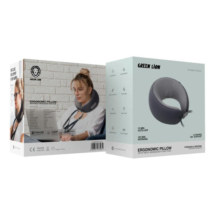 بالش ارگونومیک Green Lion با عملکرد ماساژ گردن - خاکستری