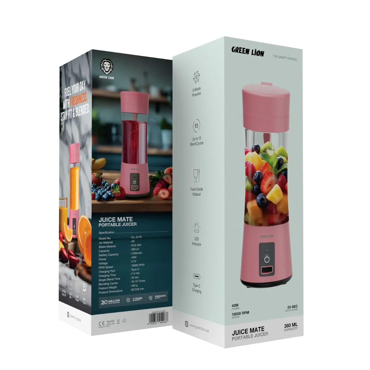 مخلوط کن شارژی گرین لاین مدل GL-JU19 ظرفیت ۳۸۰ میلی لیتر