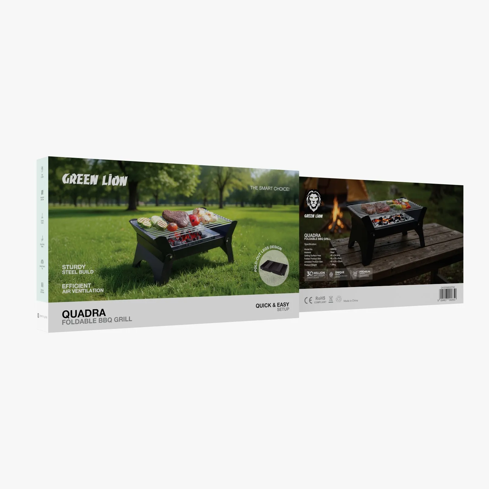 گریل باربیکیو تاشو Green Lion Quadra، شریک ایدهآل آشپزی در فضای باز برای پیکنیک، کمپینگ و دورهمیهای کوچک است. این گریل با سطح کبابپزی بزرگ ۴۵ در ۲۴.۵ سانتیمتری و ساختار فولادی محکم، فضای زیادی برای کباب کردن طیف وسیعی از غذاها ارائه میدهد.